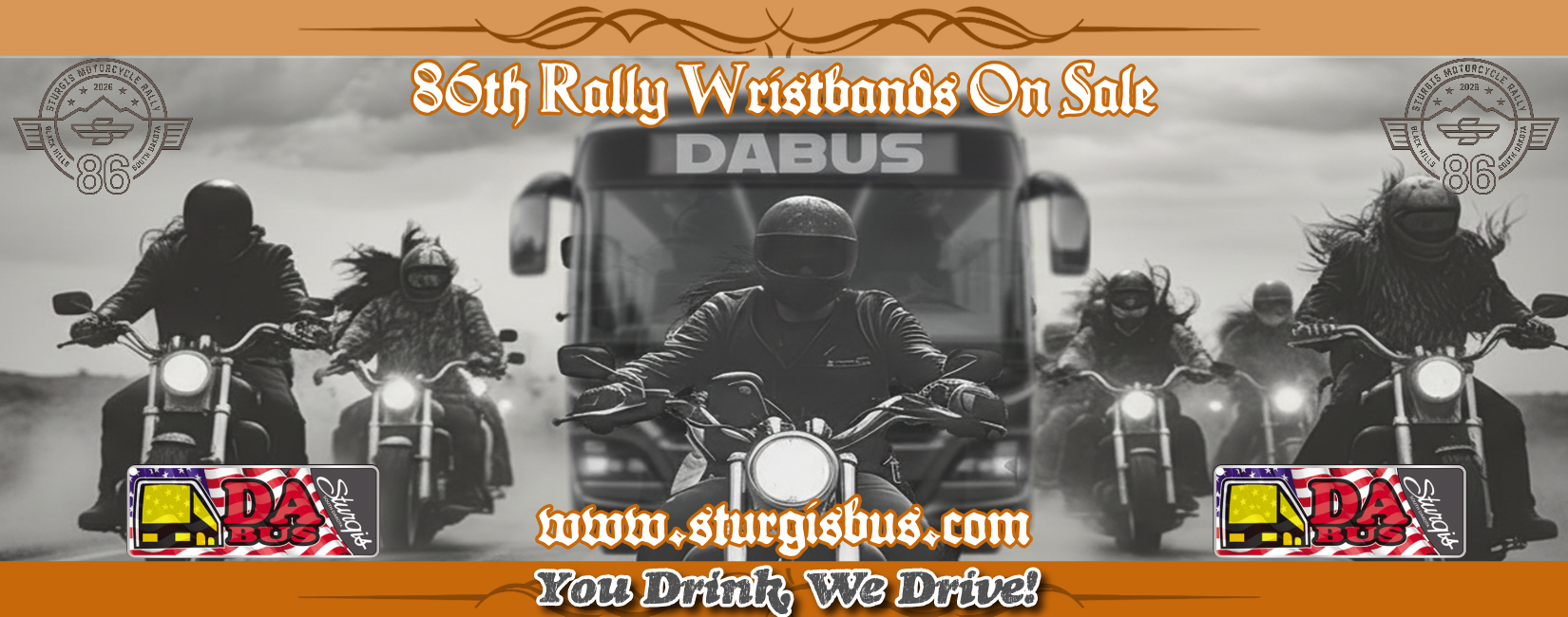 One Rally, Eight Nights, One Wristband. You know it’s the 86th Sturgis Motorcycle Rally! Join us Friday, August 7th through Friday, August 14th, 2026 on Da Bus for the Best Damn Party on Wheels. Wristbands are available to purchase using the link below.